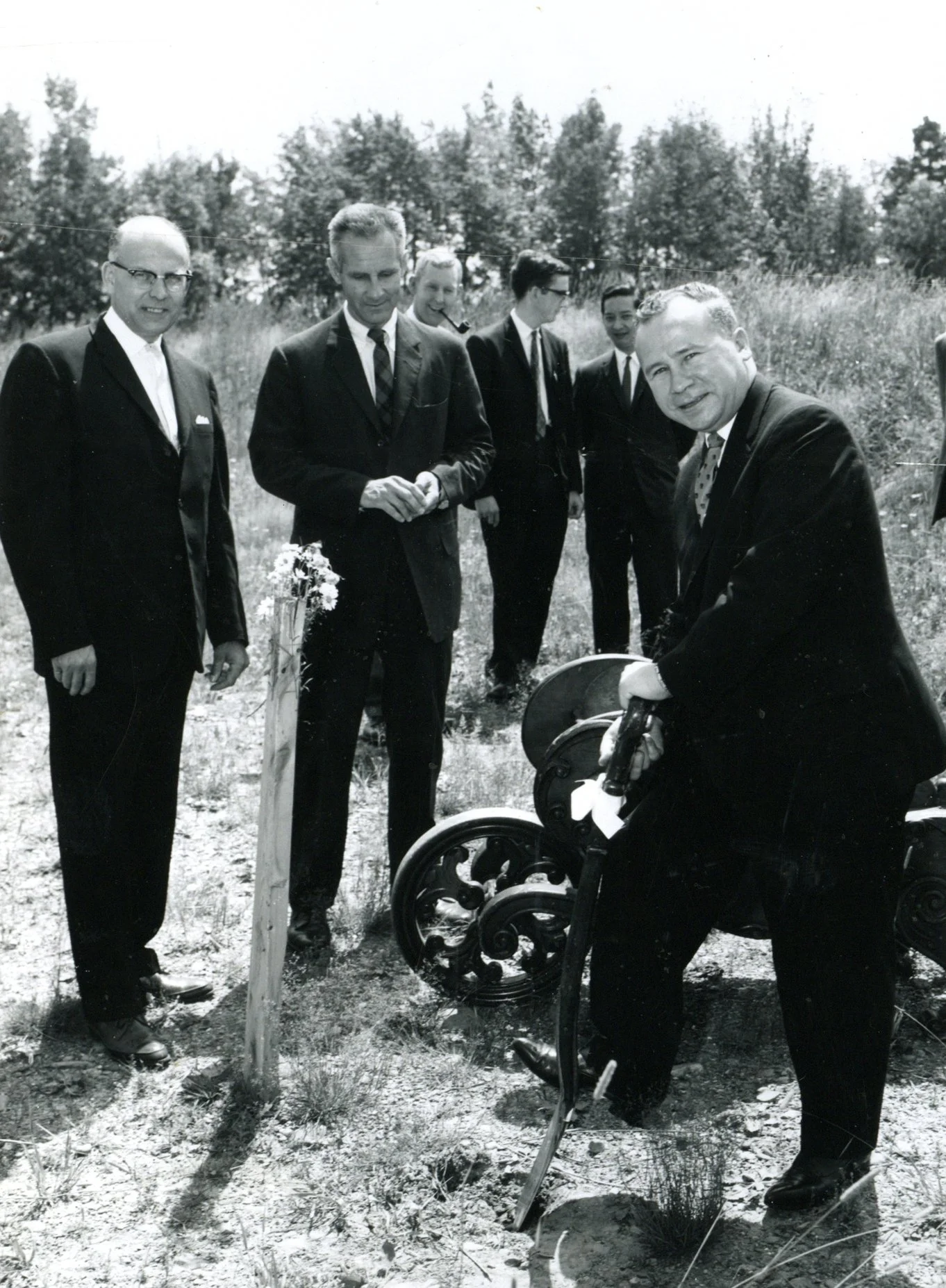 NB Premier, Louis J. Robichaud , turns sod to launch constructions of present-day RPC Fredericton facilities.